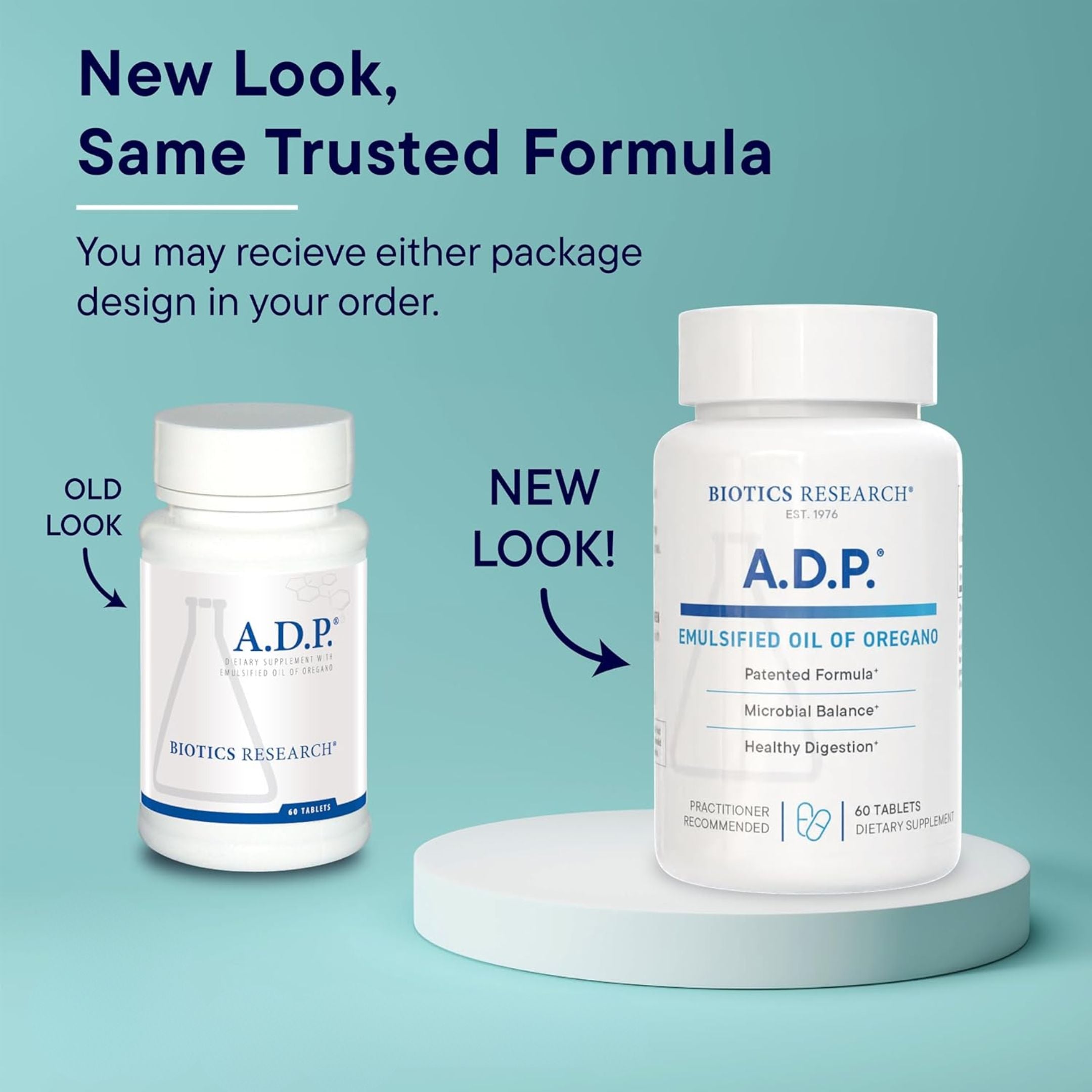 A.D.P.®: Patented oregano power for digestive health and microbe defense.