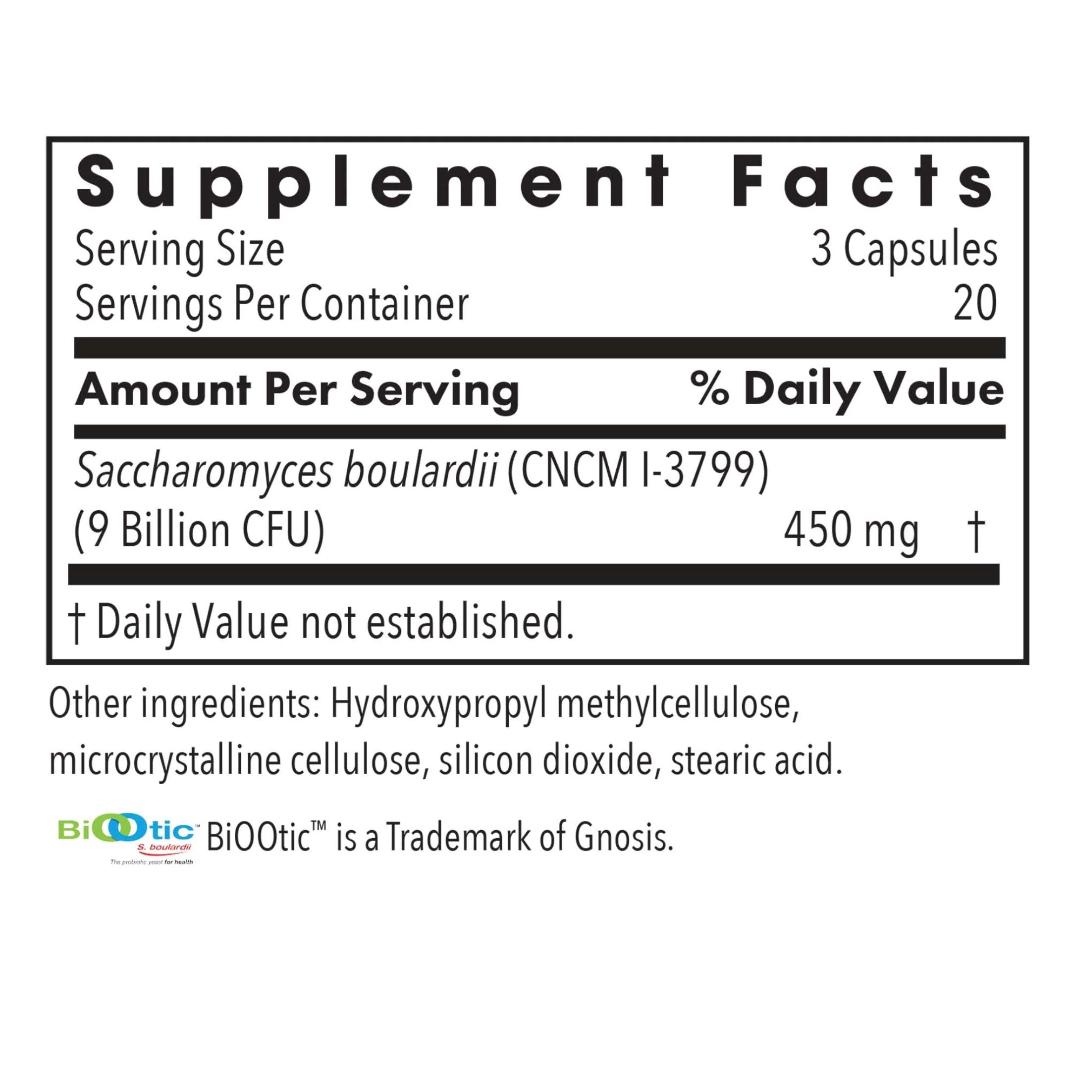 Saccharomyces boulardii (DBVPG 6763) 9 Billion CFUs | 450 mg | † |