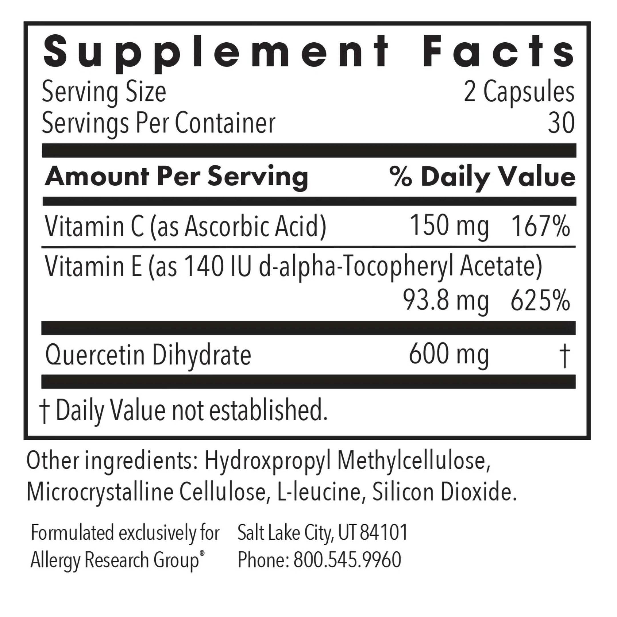 | Quercetin Dihydrate | 600 mg | † |