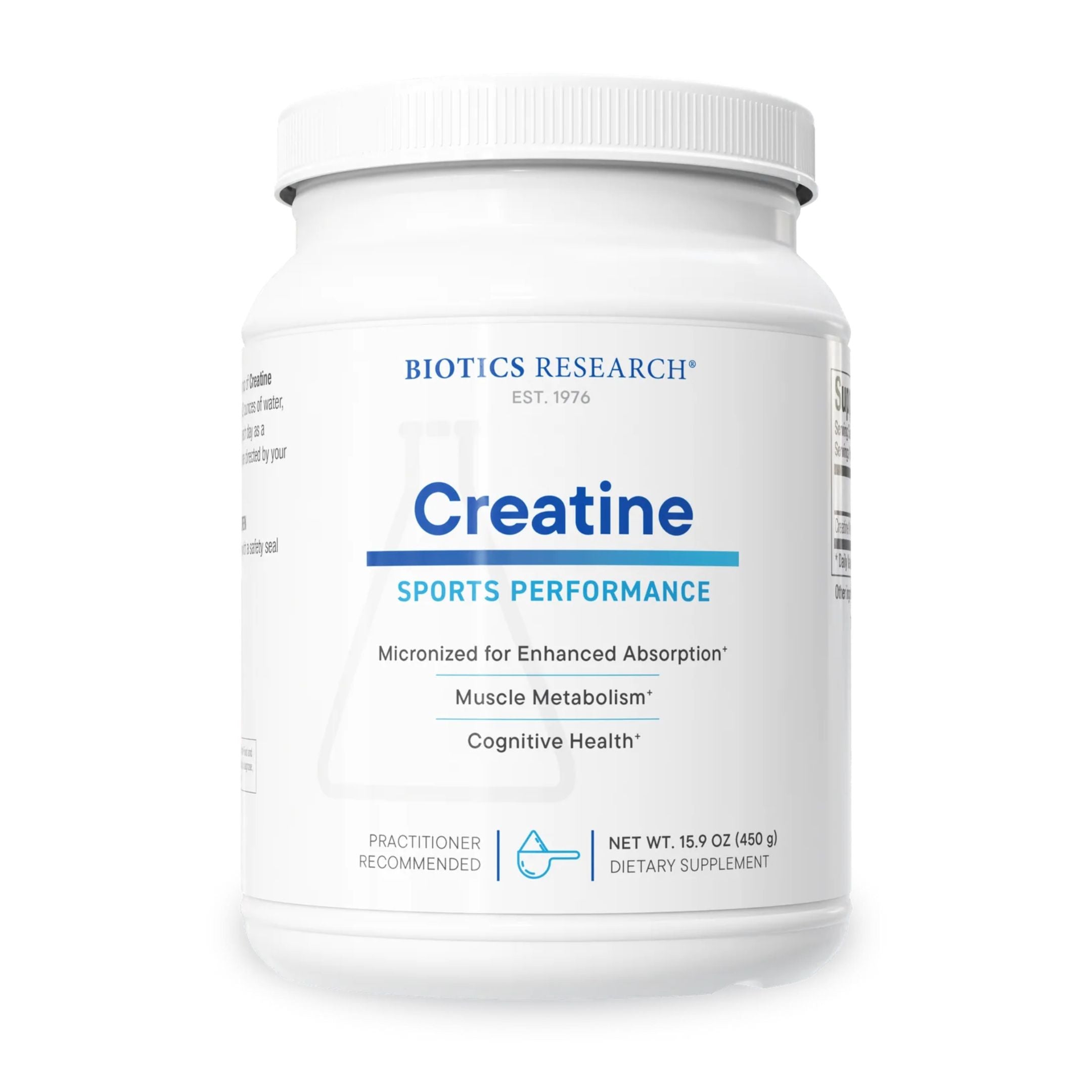 Give your body the fuel it needs to perform at its best with our pure creatine monohydrate from Biotics Research. Each serving delivers a full 5 grams of clean, highly absorbable creatine to help power your muscles, sharpen your focus, and support overall energy production. Creatine naturally boosts your body’s ability to regenerate ATP; the quick energy source your cells rely on during intense training, repeated lifts, sprints, or mentally demanding work.
