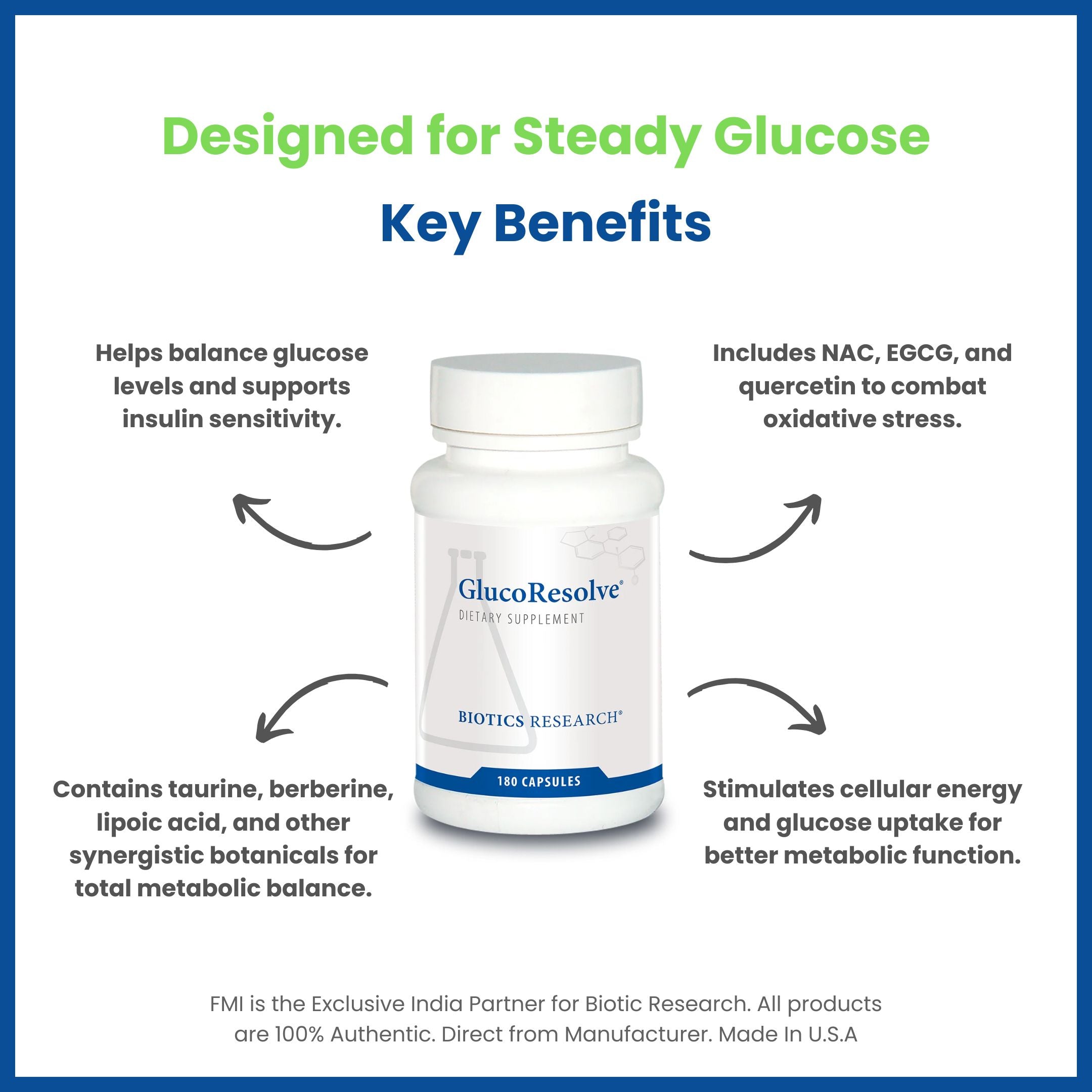 GlucoResolve is a daily multivitamin carefully crafted to promote healthy blood sugar levels. Alongside fundamental vitamins and minerals, GlucoResolve incorporates a blend of beneficial ingredients such as taurine, lipoic acid, pomegranate seed extract, EGCG, NAC, berberine, acetyl-l-carnitine, forskolin, grapeseed, and quercetin. This unique combination aims to support healthy weight management, optimize metabolism, offer potent antioxidants, and stimulate AMPK activity, which in turn supports normal energy-generating processes like glucose uptake.