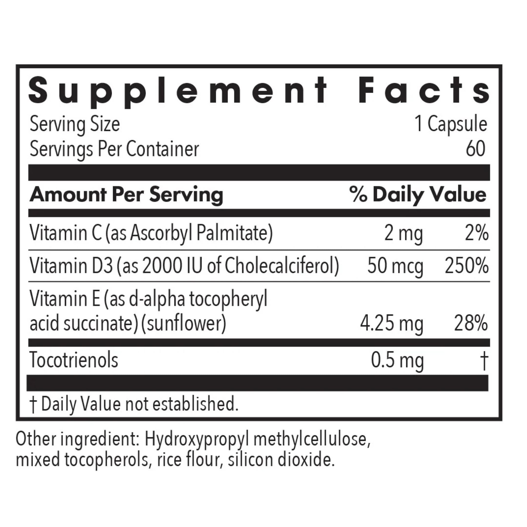 | Vitamin D3 (as 2000 IU of Cholecalciferol) | 50 mcg | 250% |