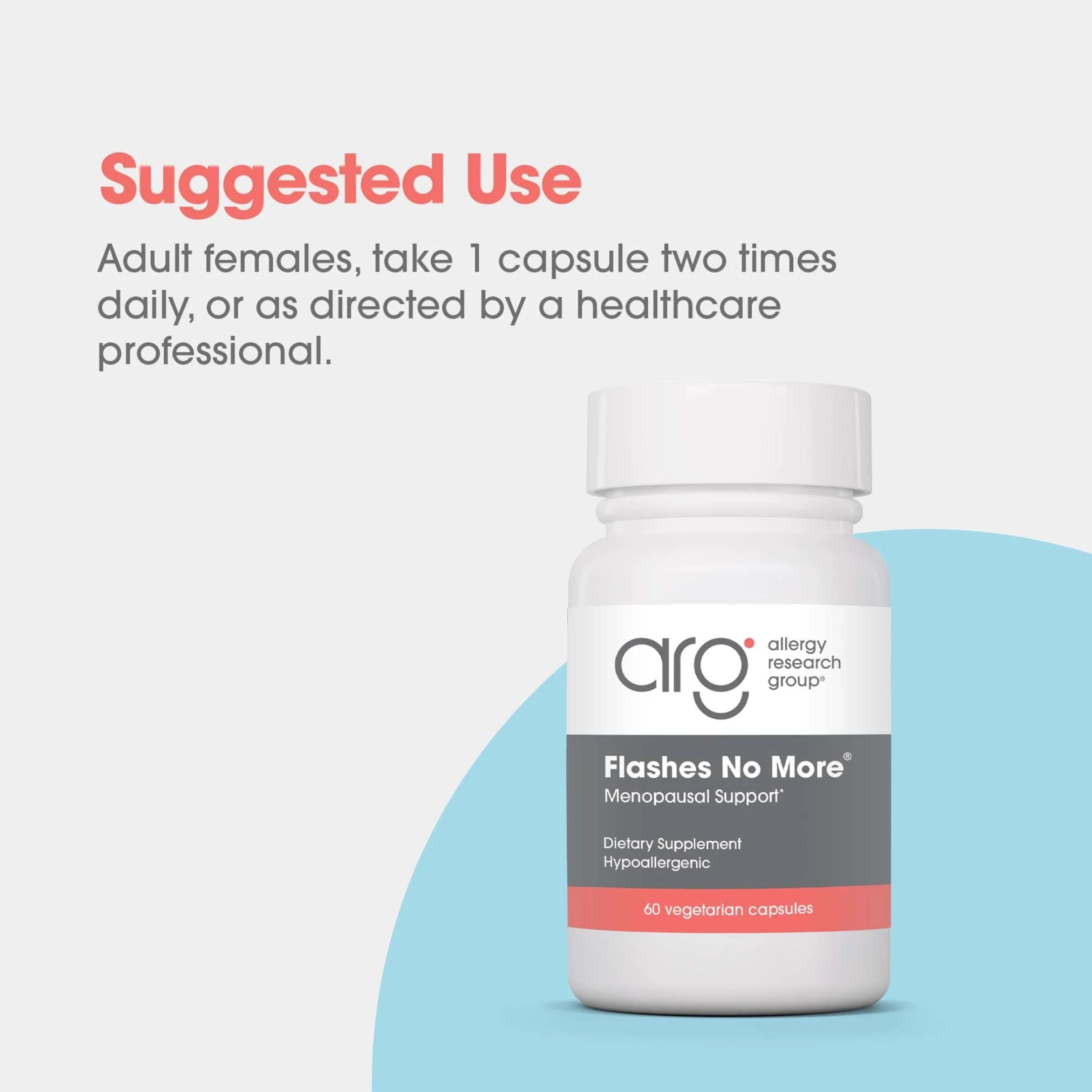 Dosage--As a dietary supplement, adult females take 1 capsule two times daily, or as directed by a healthcare professional.