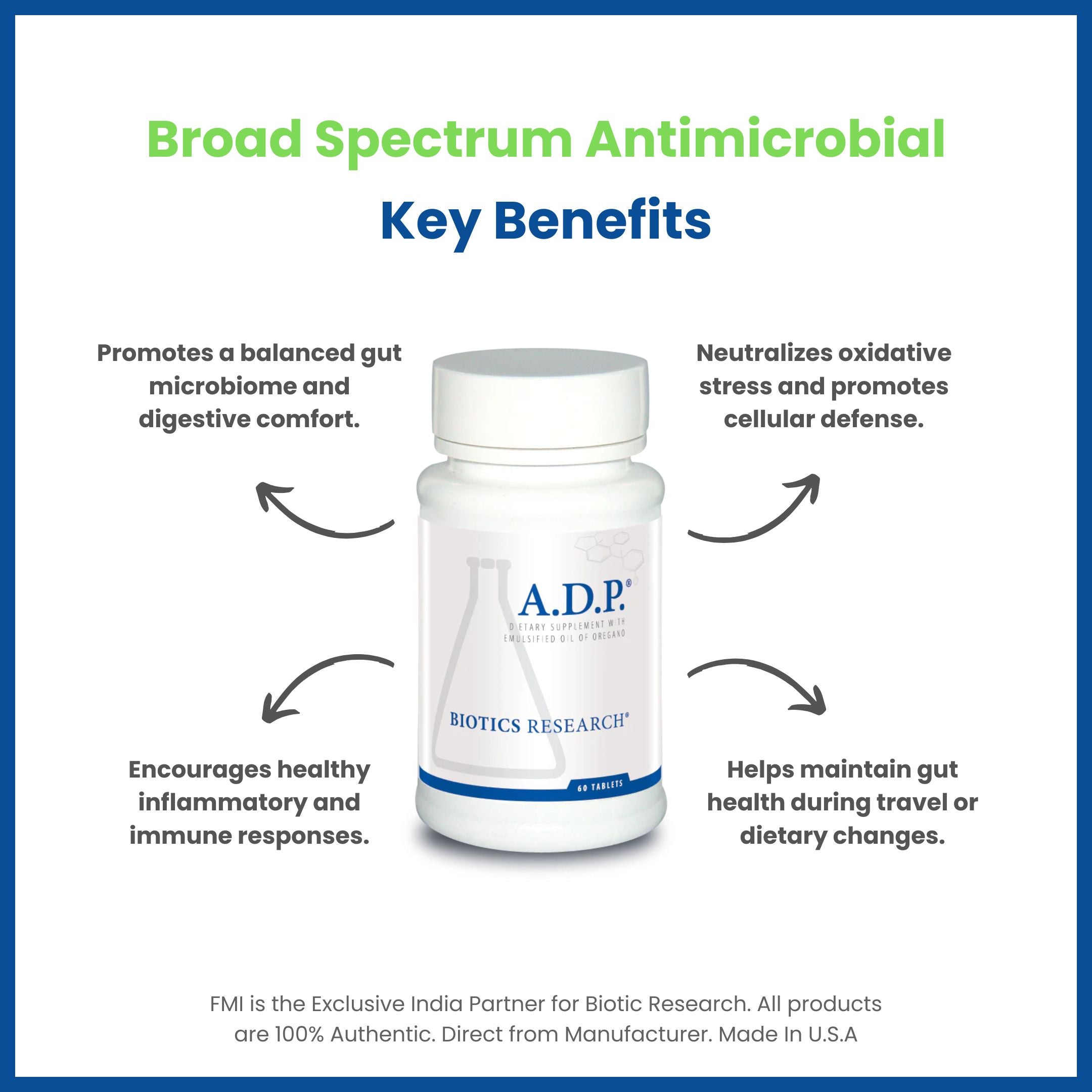 A.D.P.®: Patented oregano power for digestive health and microbe defense.