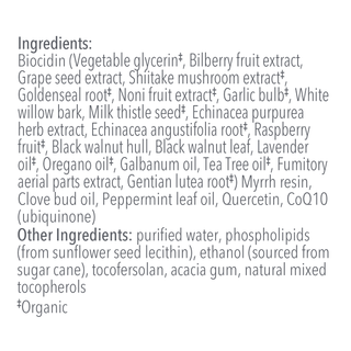 ‡ Organic Ingredients Other Ingredients: Purified water, phospholipids (from sunflower seed lecithin), ethanol (sourced from sugar cane), tocofersolan, acacia gum, natural mixed tocopherols. Recommendation: Swish with 2 pumps for 1-2 minutes, then spit. Use 2-3 times daily after brushing with Dentalcidin® Toothpaste and flossing. Store at room temperature. | ||