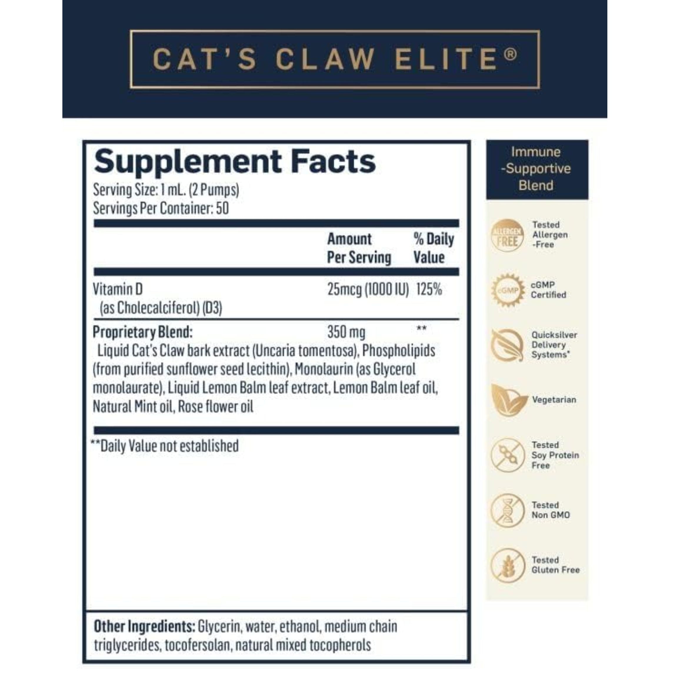 Proprietary Blend Liquid Cat’s Claw bark extract (Uncaria tomentosa), Phospholipids (from purified sunflower seed lecithin), Monolaurin (as Glycerol monolaurate), Liquid Lemon Balm leaf oil, Natural Mint oil, Rose Flower Oil |