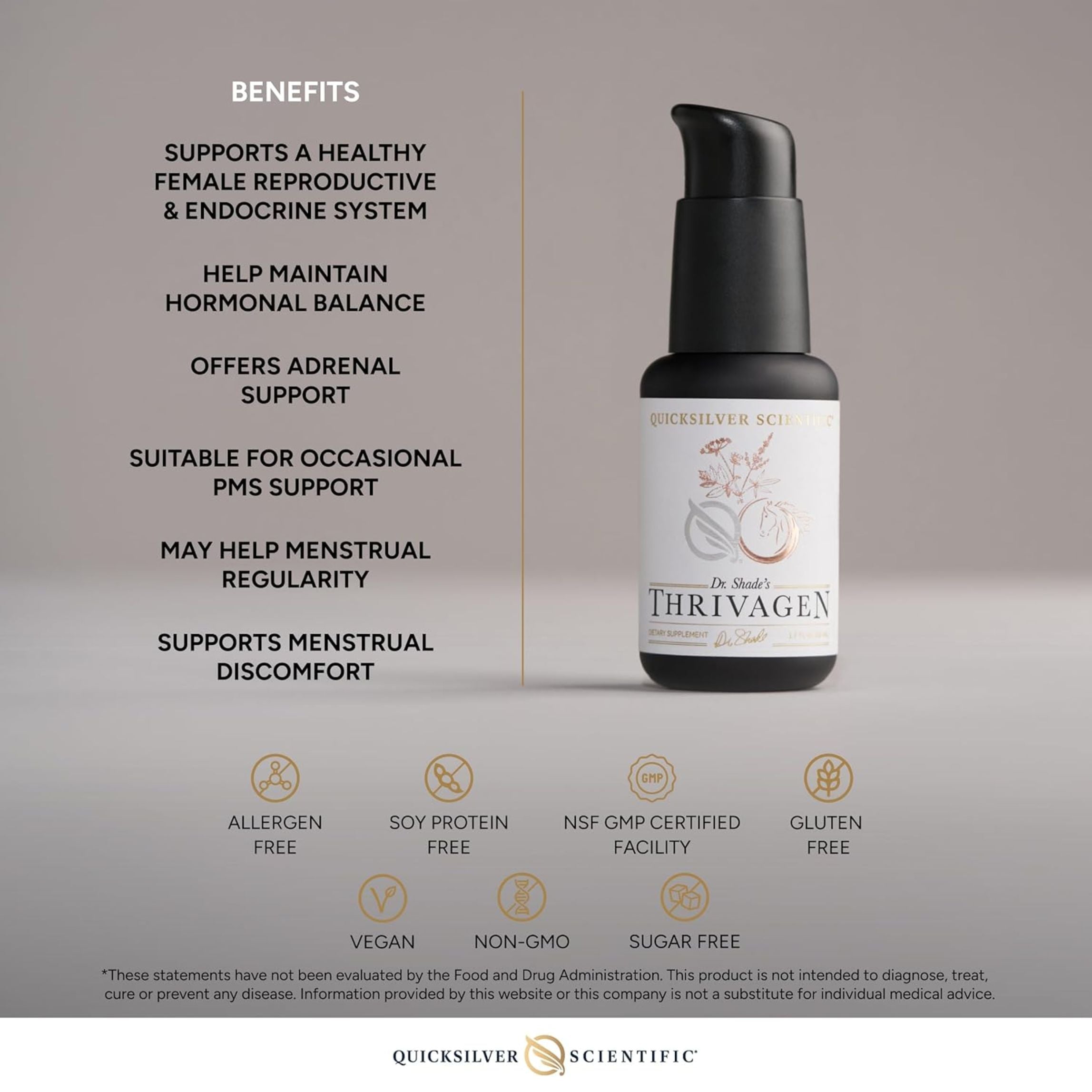 Thrivagen® is ideal for women seeking natural support for hormonal balance, stress resilience, energy, and cognitive clarity. It is especially beneficial for women experiencing premenstrual discomfort, mid-life hormonal changes, or stress-related fatigue. With its clean, vegan formulation and advanced delivery system, Thrivagen® is suitable for health-conscious women who want a safe, effective, and science-backed solution for long-term wellbeing.