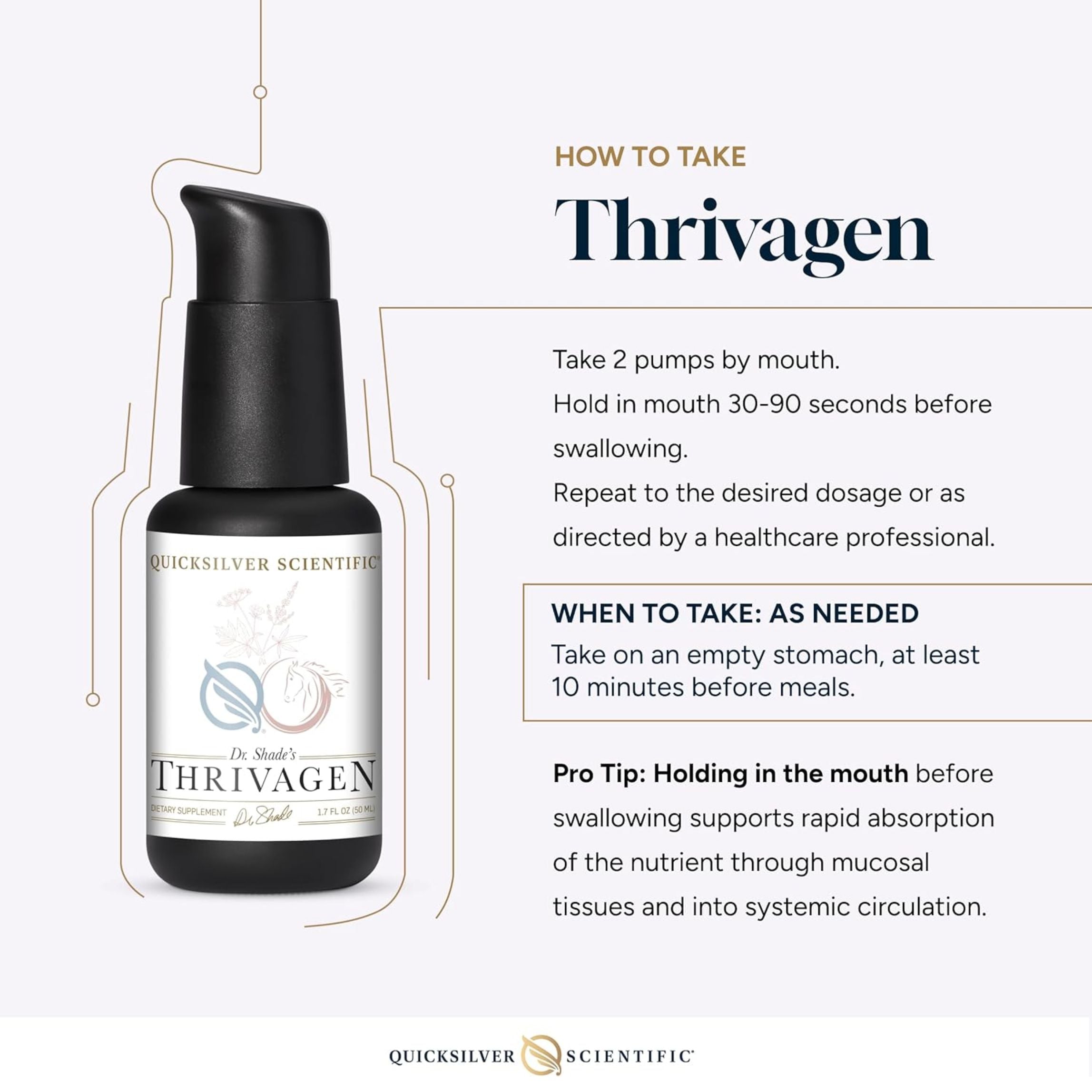 Suggested Dosage: Take 2 pumps by mouth twice daily. Hold in mouth 30 -90 seconds before swallowing. Repeat to desired dosage or as directed by a healthcare professional. Take on an empty stomach, at least 10 minutes before meals. Use within 60 days of opening. |