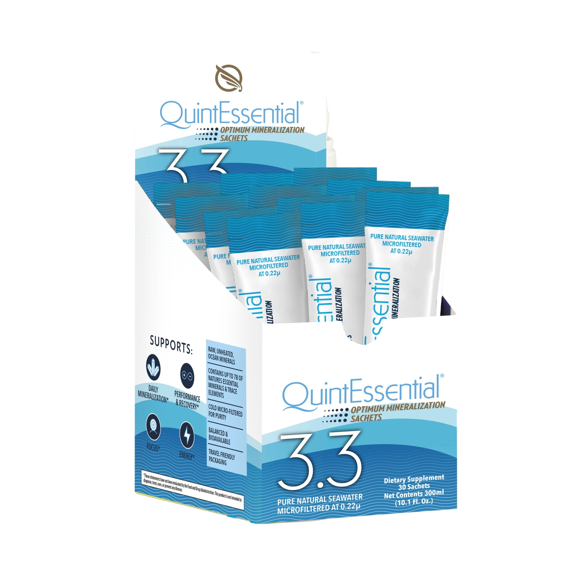 Precautions: Due to the presence of sodium (Na+), it is advisable to obtain medical supervision prior to beginning QuintEssential® 3.3 if you have been diagnosed with or suspect that one of the following applies to you: Hypertension, kidney failure, low sodium diet, or iodine intolerance, although no adverse events have been reported.