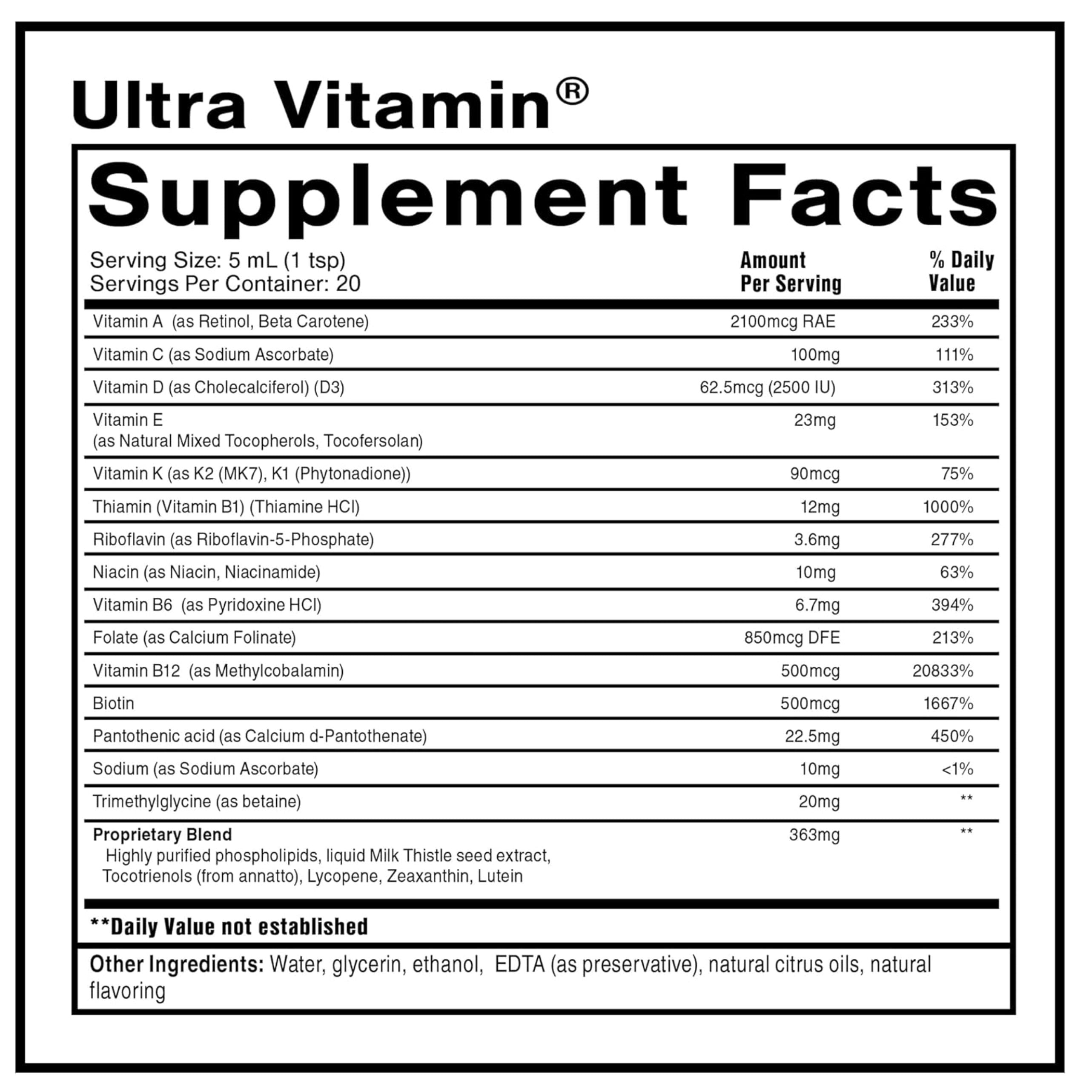 Supplement Facts Serving Size: 5 mL (1 Tsp) Servings per Container: 20 |
