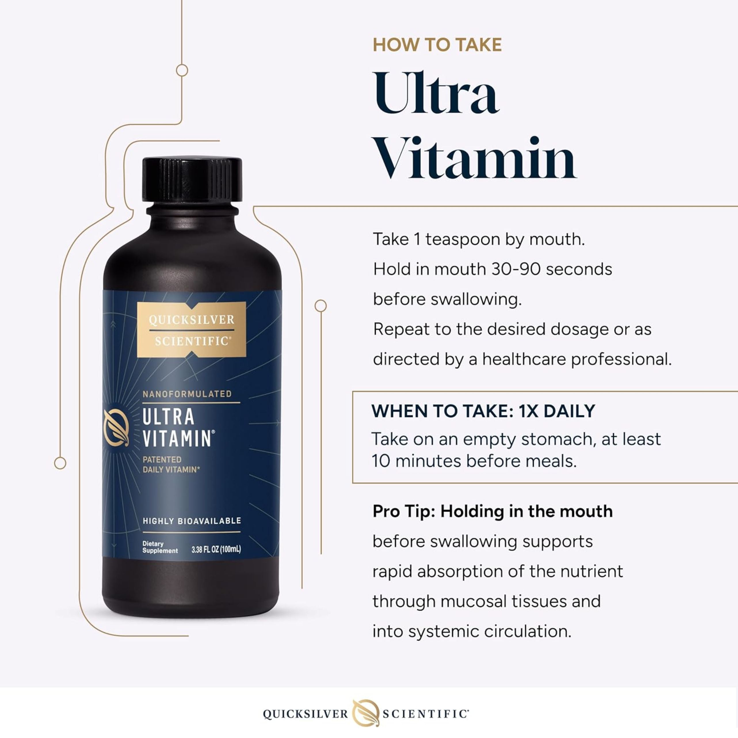 **Daily Value Not Established Suggested Use: Take 1 teaspoon by mouth once daily. Hold in mouth 30 - 90 seconds before swallowing. Repeat to desired dosage or as directed by a healthcare professional. Take an empty stomach, at least 10 minutes before meals. |