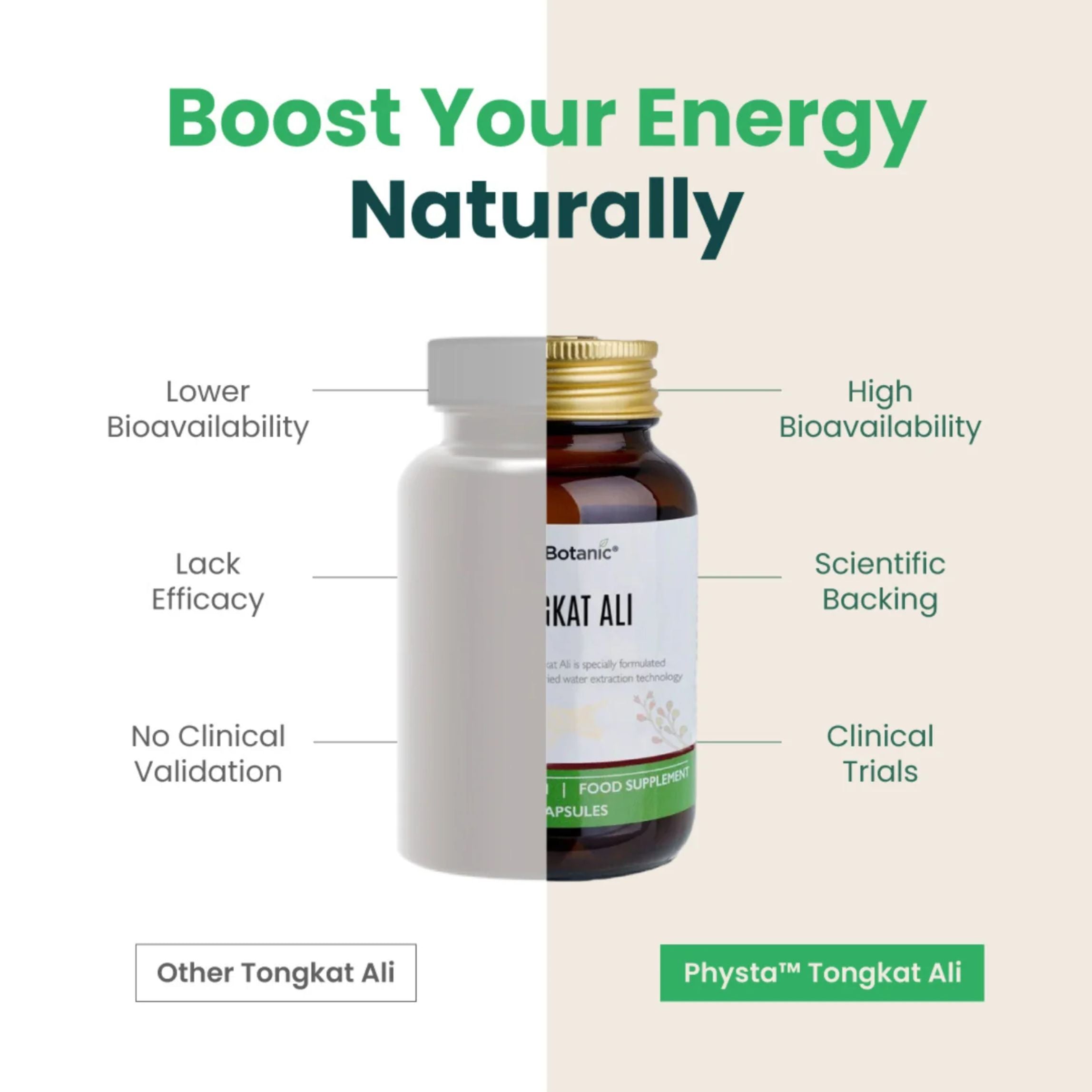 Physta® is a standardized Tongkat Ali extract, clinically validated through more than 26 human studies demonstrating its benefits for quality of life, hormone balance, fertility, strength, and overall health.
