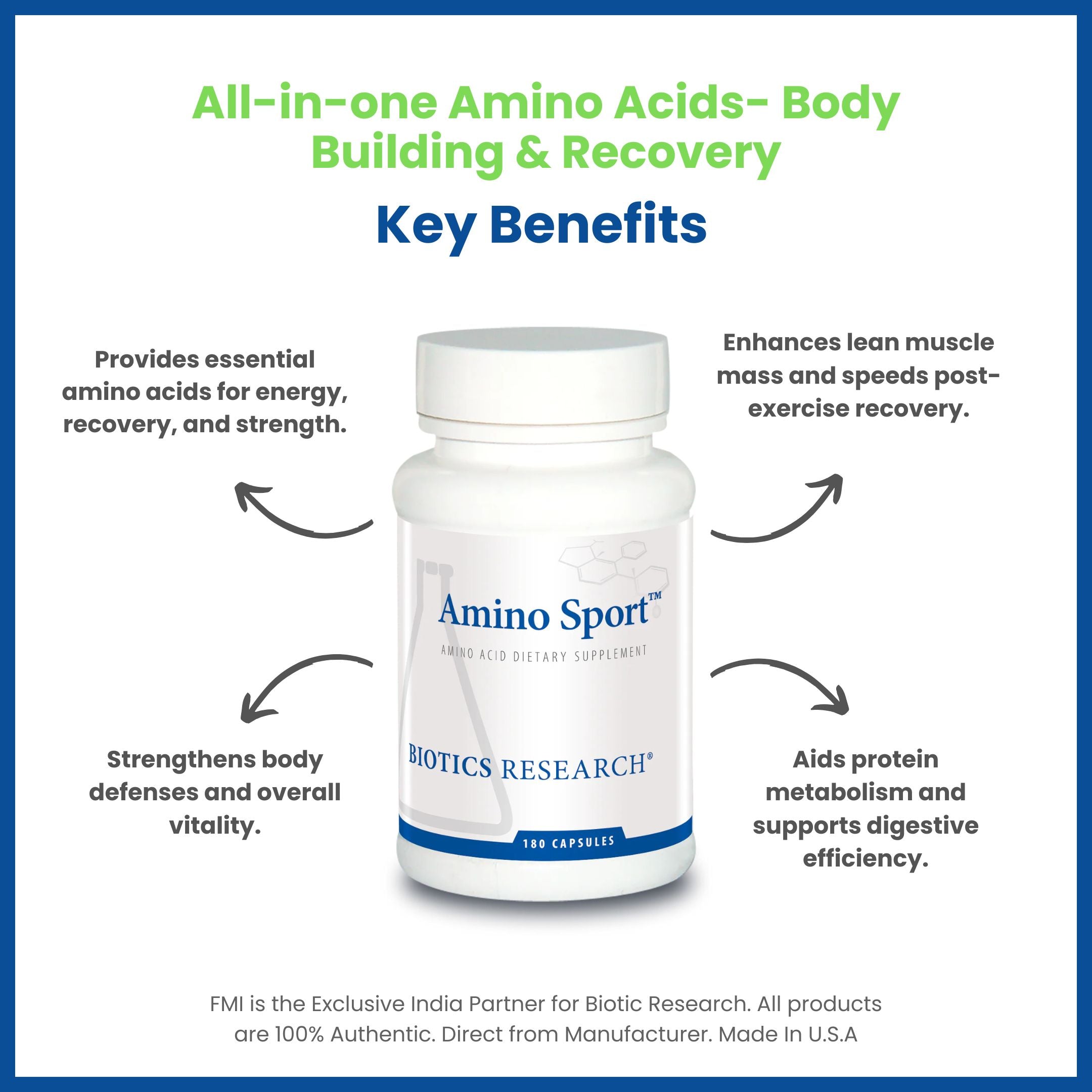 Amino Sport is a comprehensive amino acid formula suitable for various purposes such as bodybuilding, targeted amino acid support, or inclusion in a rehabilitation program.