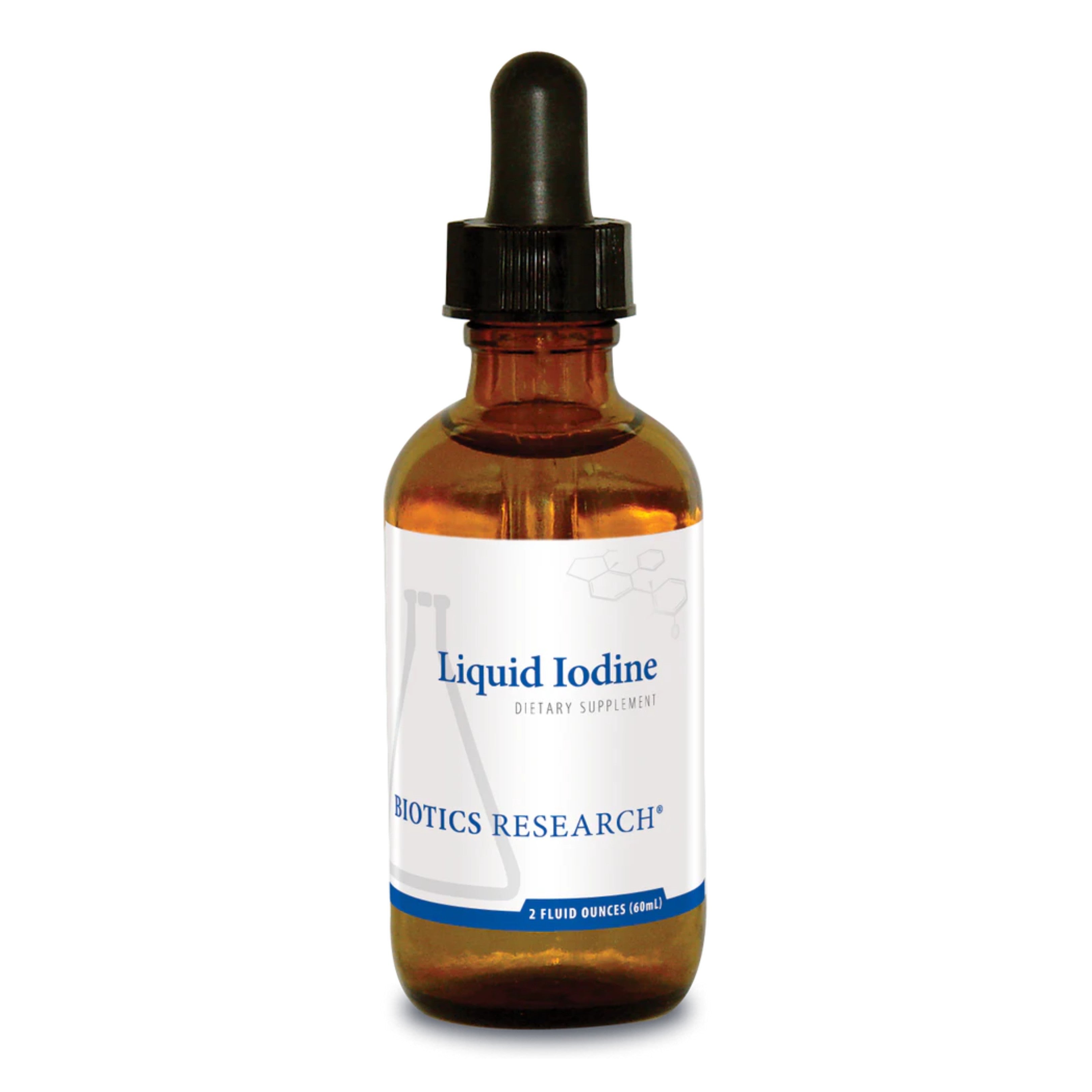 Liquid Iodine provides 75 mcg of iodine (as potassium iodide) per drop, serving as an essential trace mineral crucial for maintaining healthy thyroid function.* While the thyroid gland sequesters about 80% of dietary iodine intake, other tissues also concentrate iodine, including salivary glands, gastric mucosa, choroids plexus, lactating mammary gland, and ovaries.
