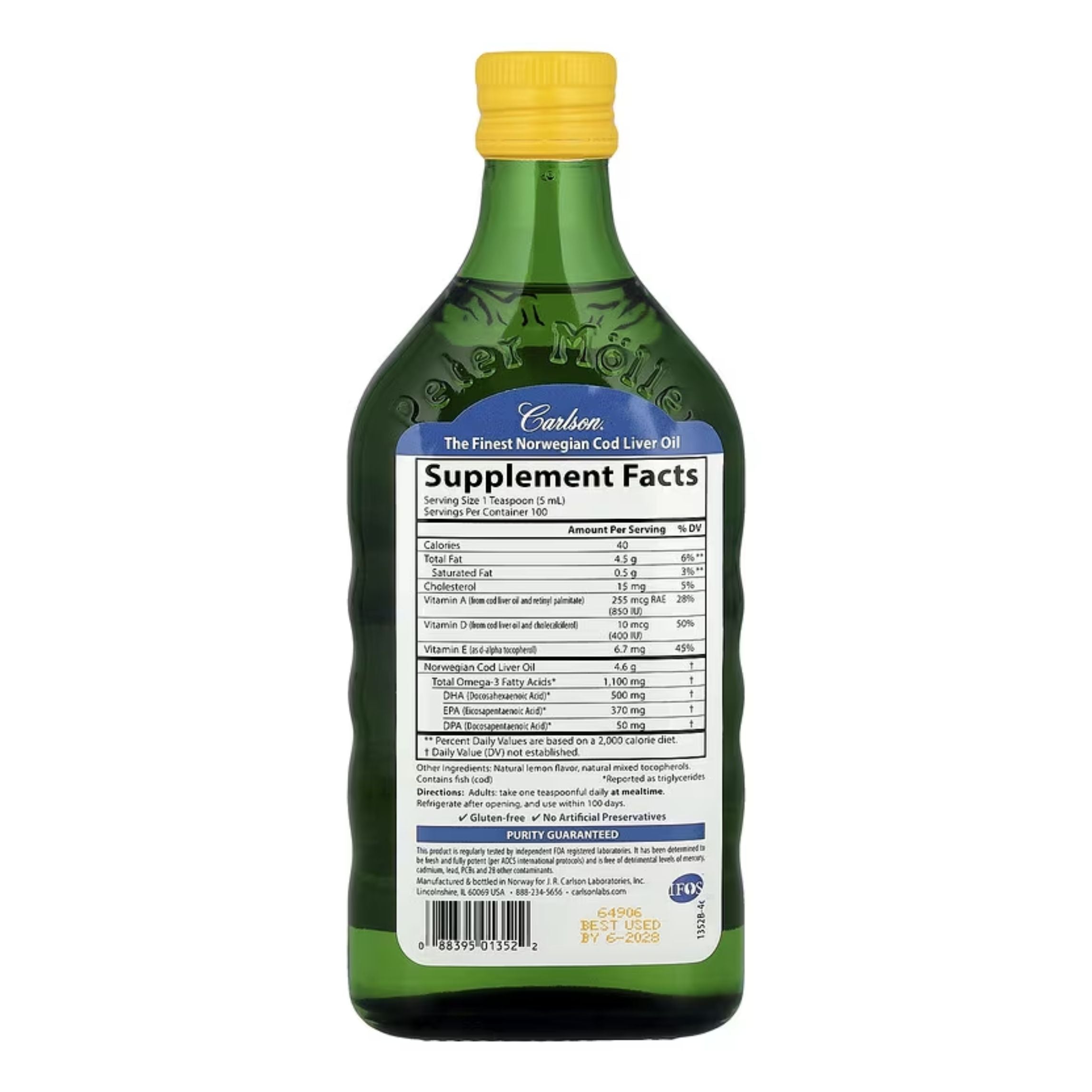 • Award-Winning Taste & Quality: Recognized with numerous awards, Carlson Cod Liver Oil delivers exceptional purity and flavor.